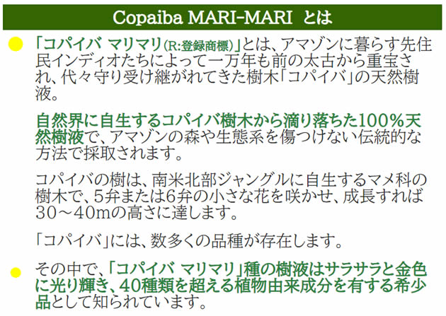 コパイフェラオフィシナリス樹脂(=コパイバ マリマリ オイル)、